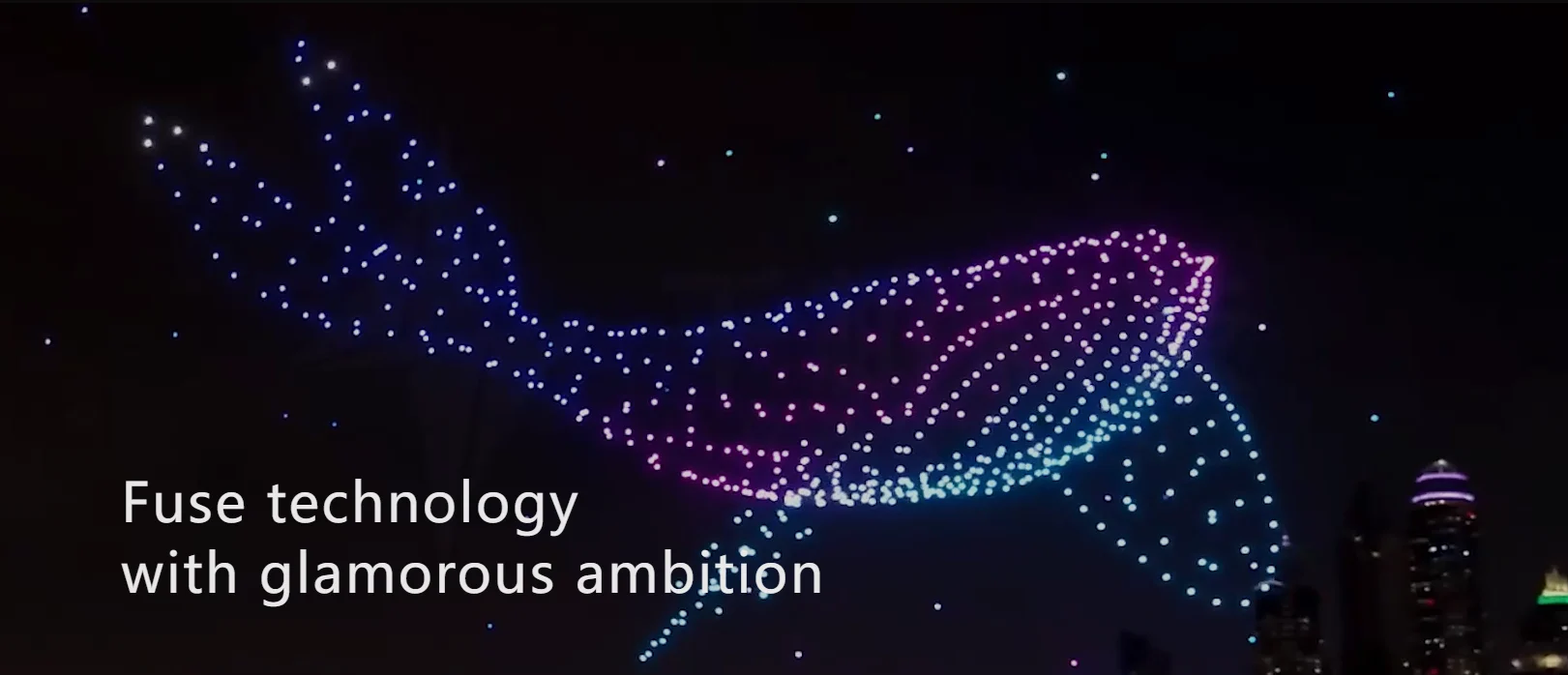 A typical drone show lasts up to 15 minutes before drones return home. Low temperatures or strong wind may shorten the duration to 8-10 minutes.